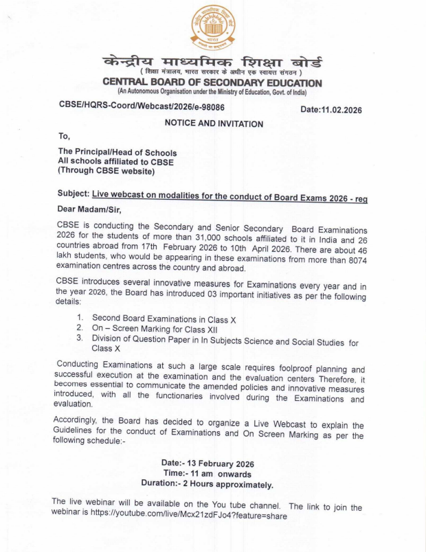 CBSE Board has issued a notice related to Live webcast on modalities for the conduct of Board Exams 2026 which all students and teachers should know about. This blog post will tell you the complete details about Board Exam 2026 guidelines. That is why all teachers and students should read this blog post till the end and share it with their friends or students.