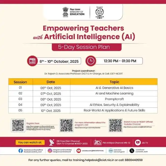 The program, scheduled from October 6 to 10, 2025, will run daily from 12:30 PM to 1:30 PM IST, and will include expert-led sessions on AI basics, machine learning, promptcraft, ethics, and future skills.