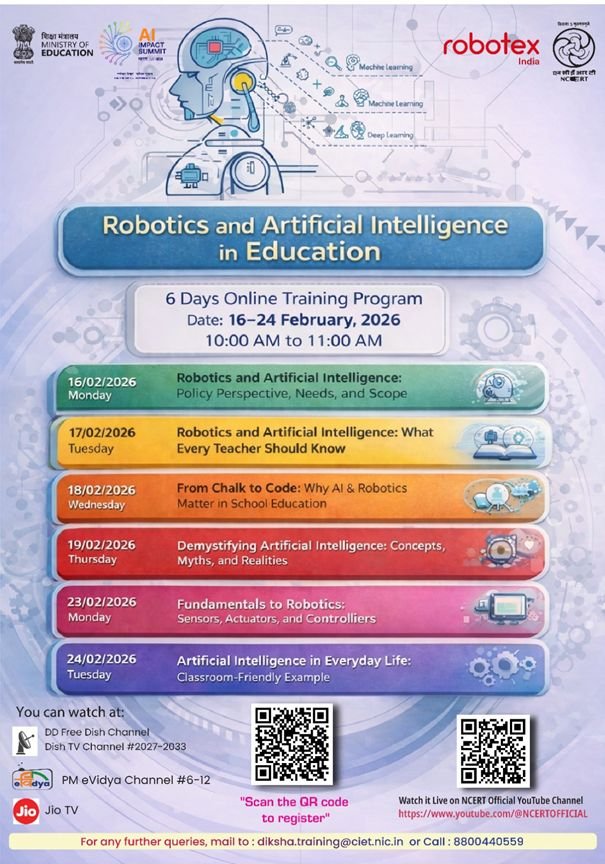 The institute will conduct the training from 16 to 24 February 2026 to help teachers integrate robotics and AI into classroom practices in line with NEP 2020 and NCF-SE 2023.